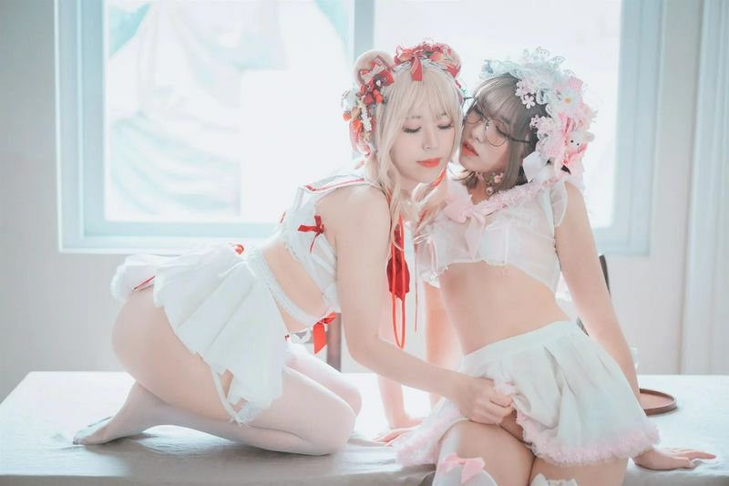 Sonson손손xMozzi모찌梦幻白纱装 互相玩弄身材无法忍